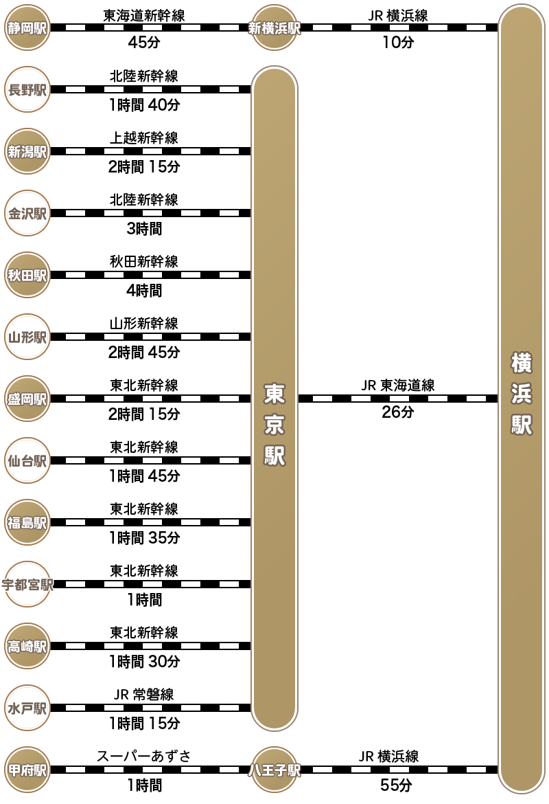 東京駅・新宿駅・大宮駅から電車でのアクセス