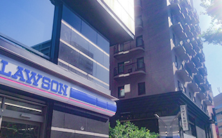 7)左手にはローソン、HOTEL THE KNOT YOKOHAMA (ホテル・ザ・ノット・ヨコハマ)があります。