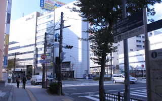 3)髙島屋沿いを左に曲がると左手前方にJTBの看板が見えてきます。