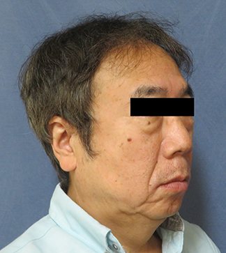 | 傷跡 | 側頭部~耳前部~耳垂~耳後部~襟足にかけて、皮膚切開を行ないます。タルミを改善する部分によって、切開線の長さが多少異なります。1週間後に抜糸を行ないます。その後3~6ヵ月程度キズの赤味が強い時期がありますが、その後は白くなって目立たなくなります。 |