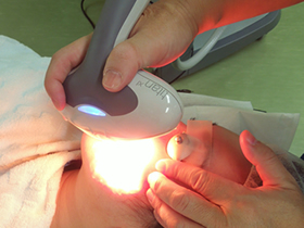 - リラックスして頂いた状態で、顔全体に丁寧な照射をしていきます。