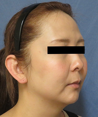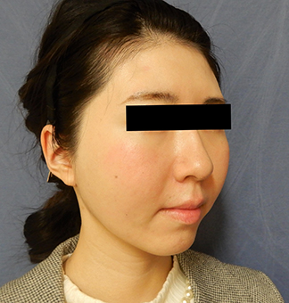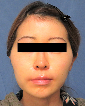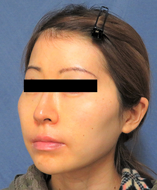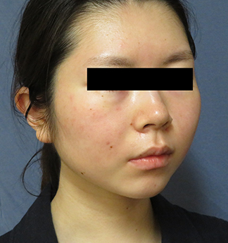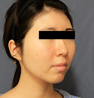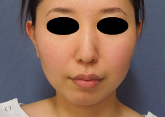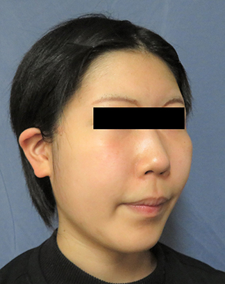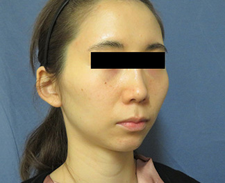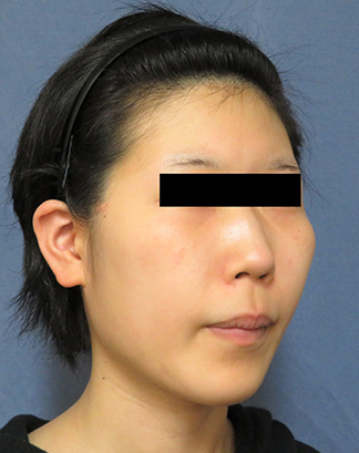 手術前: 頬骨が側方・前方へ張り出しているので、ゴツゴツした男性的な輪郭に見えます。 手術後: アーチインフラクチャー法を行なうことにより、女性らしい柔らかな輪郭になりました。