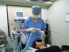 - 麻酔は全身麻酔で行ないます。まず腕に点滴を取って静脈麻酔薬を注入いたします。この時点で完全に眠ってしまいますので、目が覚めたときには手術は全部終了しています。