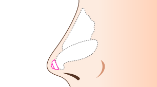 - 鼻尖部皮下に、耳介軟骨などの自家組織を移植することにより、鼻尖部を延長させる方法。