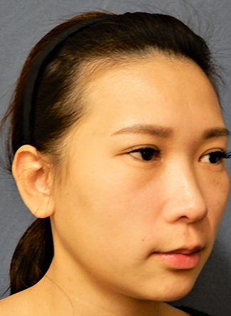 - A:まずは鼻のご状態をしっかり診察することが重要なのですが、周囲組織とのバランスを考慮することも大切です。たとえば眉毛上隆起(眉毛の部分の出っ張り)や頬骨の前方への突出が著明な、いわゆる「ホリが深い顔立ち」のかたは、鼻根部がかなり高くても不自然にはなりません。逆に顔全体がのっぺりして、凹凸が少ないかたが、鼻だけ高くなると違和感があります。ご心配なかたは画像や注入によるシミュレーションを行なって、イメージを確認しておくと良いでしょう。(⇒「シミュレーション」のページをご覧ください)また何ミリが良いかというのも、ご状態によって全く異なりますが、一般的には厚さ2~3mmで軽度の変化、3~4mmで中等度、5mm以上のものを入れるとある程度強い変化を得ることができます。