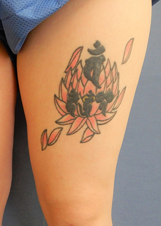 レーザーは色が濃いタトゥーには有効ですが、赤や黄色の薄い色には反応しません。また、タトゥー(入れ墨・刺青)が目立たなくなるためには数回の照射が必要なことが多く、結果的に治療期間が長くかかり費用も高額になってしまうことがあります。