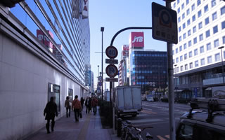 3)髙島屋沿いを左に曲がると左手前方にJTBの看板が見えてきます。