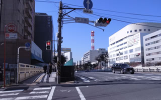 8)HOTEL THE KNOT YOKOHAMA (ホテル・ザ・ノット・ヨコハマ)を過ぎると「一の橋」の信号があります。