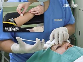 - 麻酔は皮膚に注射をして行なう局所麻酔、あるいは手術中眠ってしまう静脈麻酔のどちらかを選んでいただくことができます。 (⇒「麻酔」のページをご覧ください)