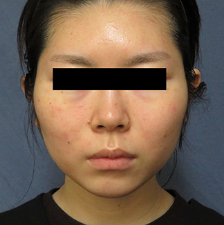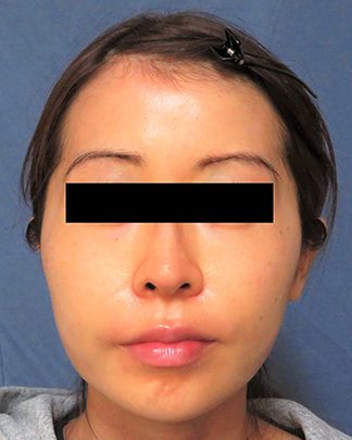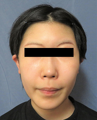 手術前: 頬骨が側方・前方へ張り出しているので、ゴツゴツした男性的な輪郭に見えます。 手術後: アーチインフラクチャー法を行なうことにより、女性らしい柔らかな輪郭になりました。