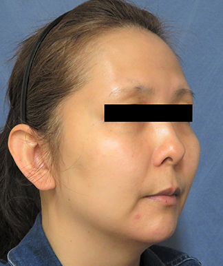 - 耳の前のキズは耳の軟骨に沿った曲線の切開線なので、2~3ヵ月経過して赤味が消えるとほとんど分からなくなります。