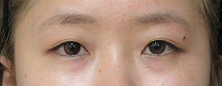 手術前: 末広型の二重瞼ですが、「インパクトのある目元にしたい」ということで、涙袋にヒアルロン酸を注入しました。 手術後: 片側に0.1ccずつ注入いたしました。涙袋にハリがあると、立体感のある目元になり、明るく優しい印象を与えます。
