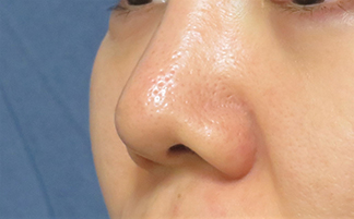 鼻先は鼻の形状を左右する重要な部分です。細くスッと伸びた鼻先に憧れるかたも多いと思います。鼻先が丸い状態、いわゆるダンゴ鼻には2つのタイプがあり、それぞれ改善方法が全く異なります。まず脂肪などの軟部組織が多く鼻先が丸く大きな形をしている場合には、軟部組織を切除して鼻軟骨を縫縮する鼻尖縮小術を行ないます。丸く低い鼻先の原因として、軟骨の量が少なく鼻先の高さが足りない場合があり、このようなケースに鼻尖縮小術を行なうと、正面から見たときの鼻先は細くなりますが、高さは改善されません。スッと細く伸びた鼻先の突出感のことをprojectionといいますが、このprojectionを得るためには、不足している軟骨を補うことが必要です。この場合、重症なケースや劇的な変化を望まれるならば、鼻中隔延長術を行ないますが、軽度の改善やナチュラルな変化を希望されるのならば、鼻先に耳の軟骨を移植する鼻尖延長術が良い適応になります。「もう少しだけ鼻先を高くしたい」「自然な形で鼻先を細くしたい」とお考えのかたはご相談にいらっしゃってください。